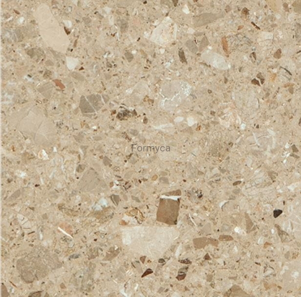 Italian marble conglomerate is an industrially produced stone and consists of 95% marble and 5% polyester resin, which serves as a binder for the natural stone.