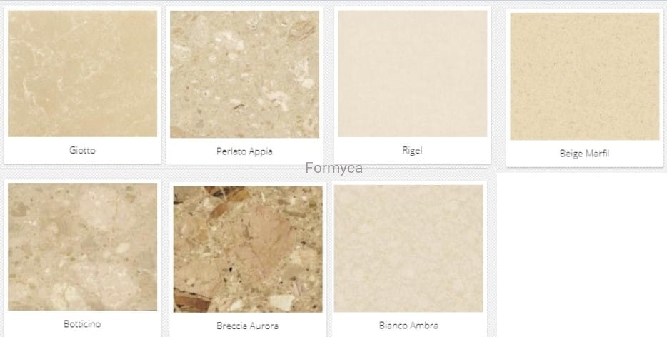Italian marble conglomerate is an industrially produced stone and consists of 95% marble and 5% polyester resin, which serves as a binder for the natural stone.