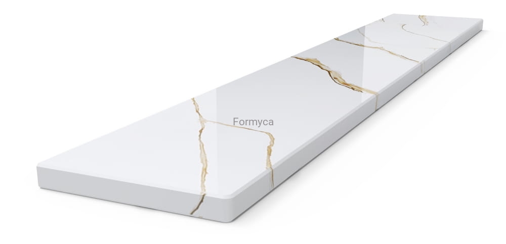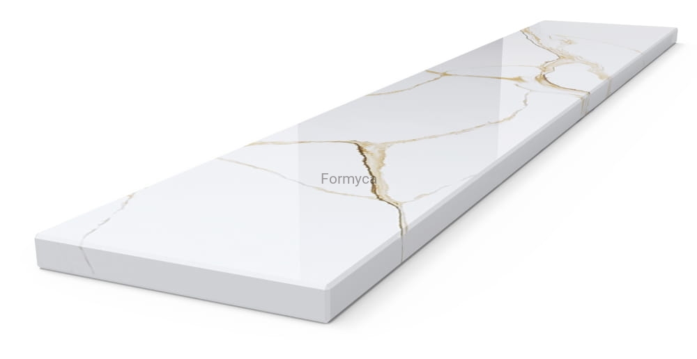 The windowsill is made of Calacatta Gold Oro Quartz, 3 cm thick.